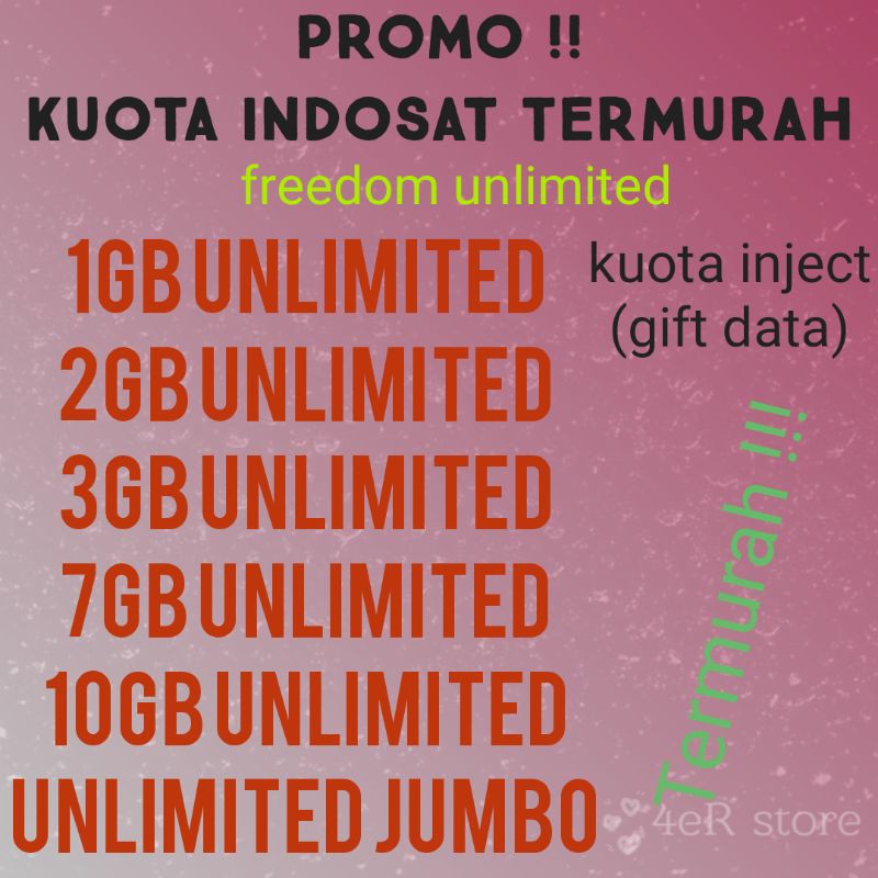 Cr — seperti telkomsel yang memberikan paket khusus belajar dengan harga rp 10, indosat pun tidak ingin ketinggalan. Paket freedom u jumbo, paket freedom im3, paket freedom combo, aplikasi tembak voucher kosong, kuota murah indosat 2020, perdana indosat . Paket indosat freedom kuota harian (1gb/hari) inject & voucher termurah. Paket freedom u berlaku untuk nomor prabayar im3 ooredoo (aktif sebelum 1 oktober) dan pascabayar im3 ooredoo (aktifasi pascabayar sejak 12 februari 2018). Jual beli kuota indosat inject online aman garansi shopee.